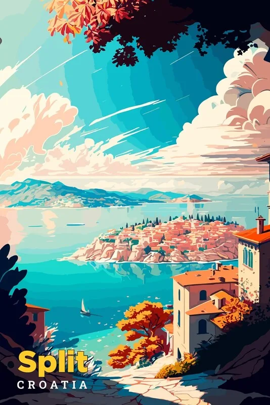 Vægklistermærke Split Croatia Vintage Art Travel Illustration Poster