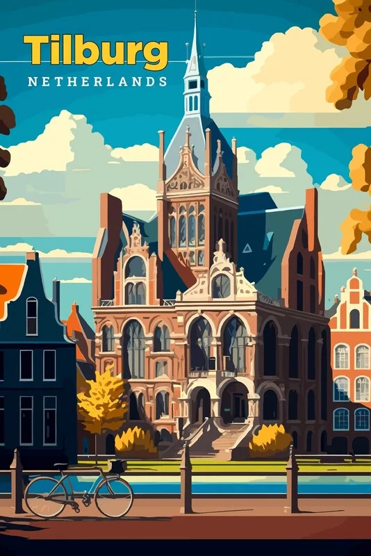 Billede på lærred Tilburg Netherlands Vintage Art Travel Illustration Poster