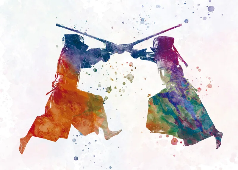 Billede på lærred Watercolor kendo fighter