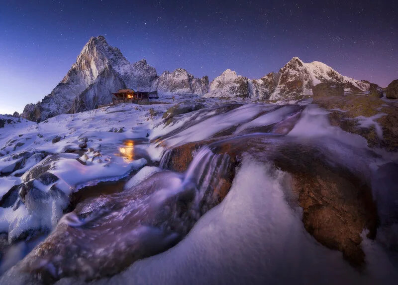 Billede på lærred Winter landscape during frosty night in High Tatras