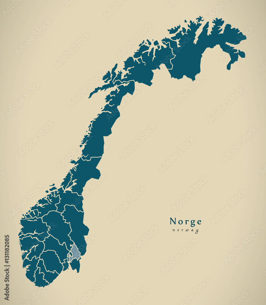 Fotografi Modern Map - Norway with counties NO illustration