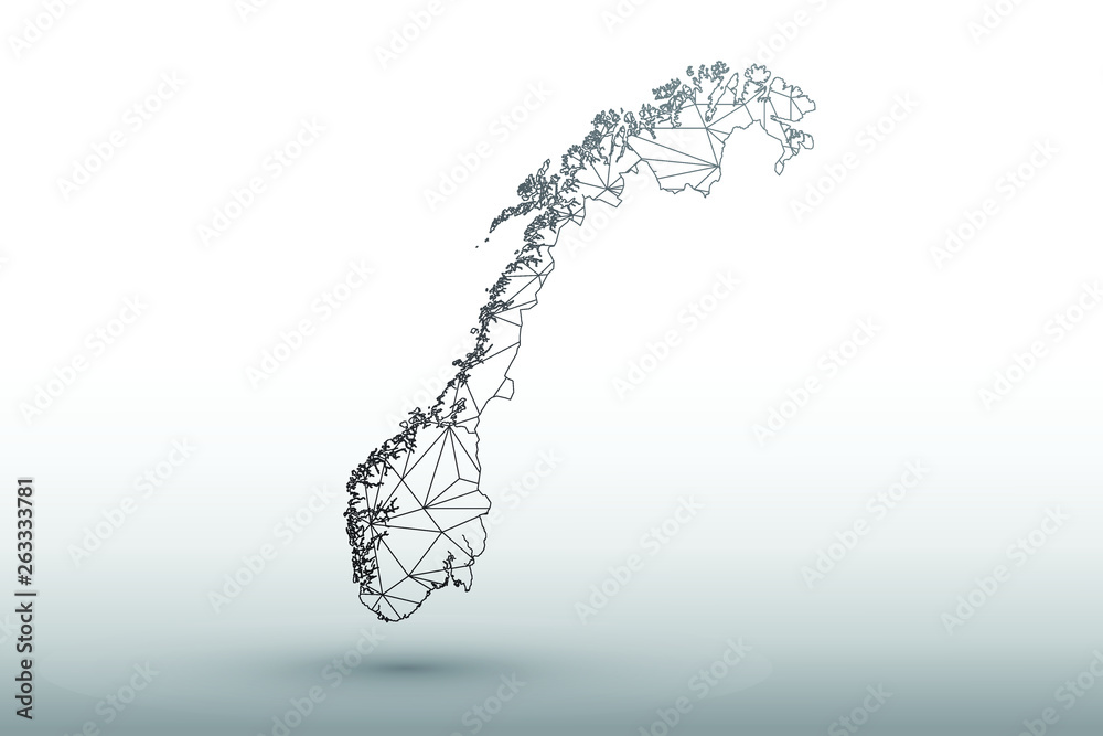 Billede på lærred Norway map vector of black color geometric connected lines using triangles on li