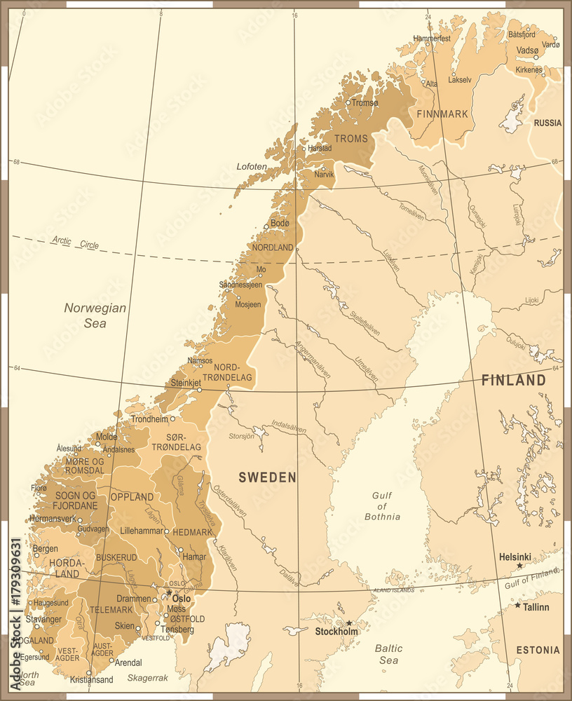 Billede på lærred Norway Map - Vintage Vector Illustration