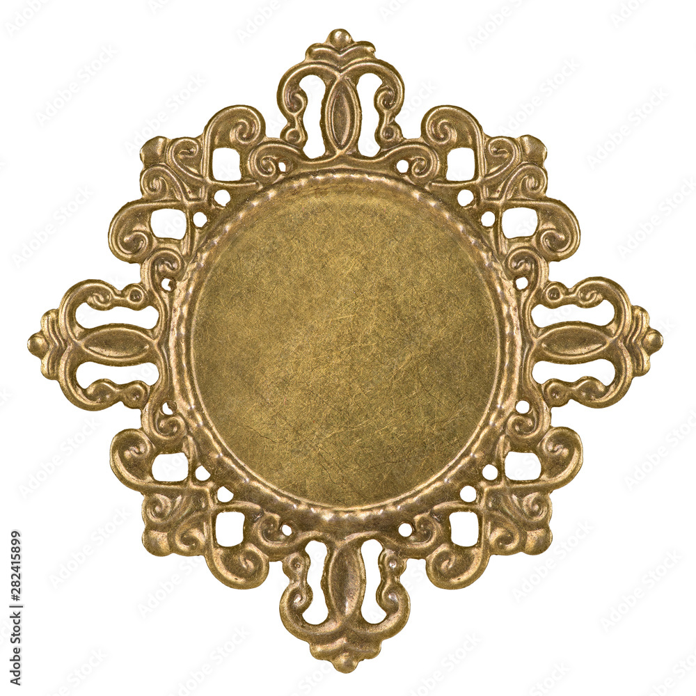 Fotografi openwork basis for cabochon brooch made of brass isolated on white background cl