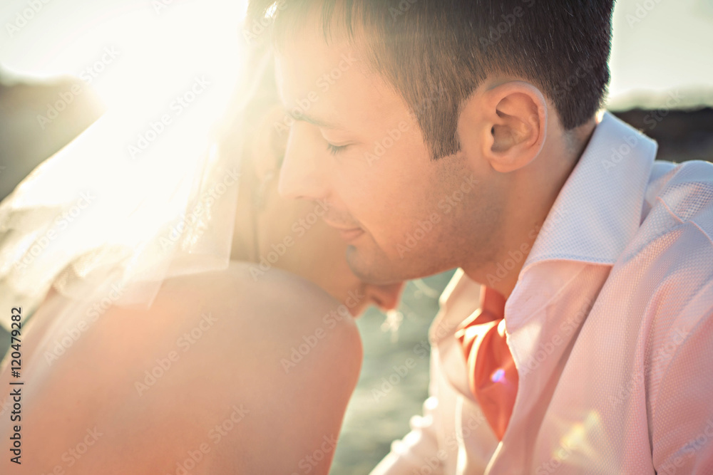 Fotografi groom and bride hugging each other