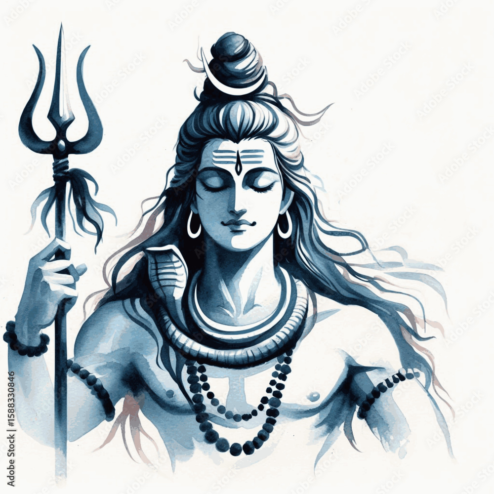 Fotografi Ascetic's Gaze: Lord Shiva isolated watercolor vector illustration svg