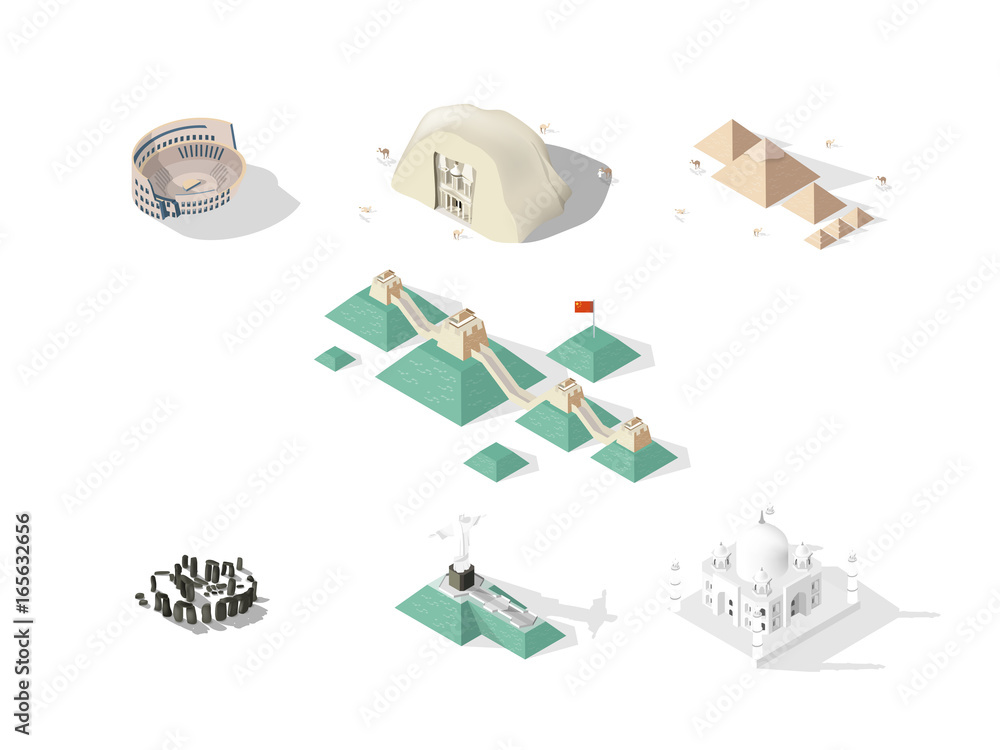 Fotografi illustration vector isometric design concept of 7 Wonders of the World: Colosseu