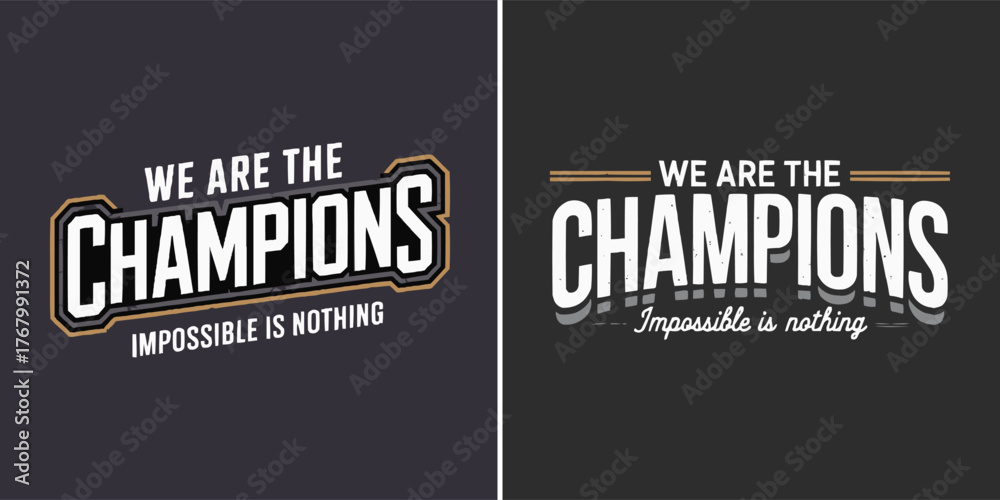 Fotografi We are the champions motivational typography with bold athletic lettering and vi