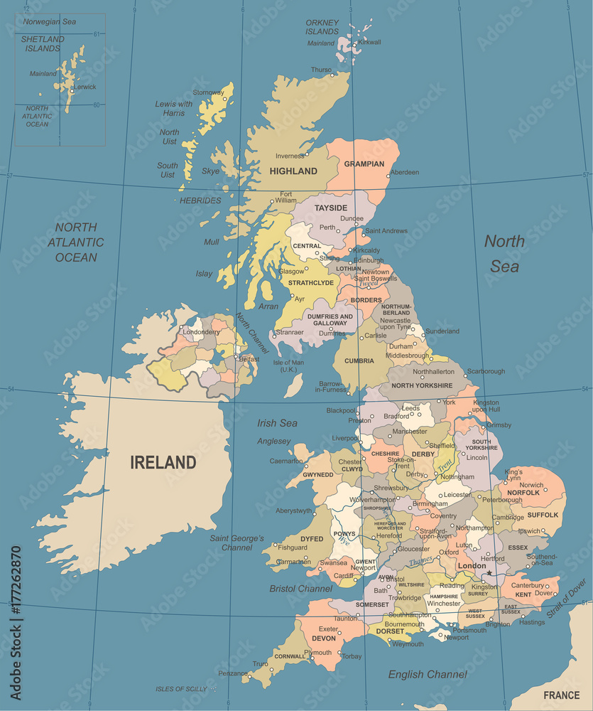 Fotografi United Kingdom Map - Vintage Vector Illustration
