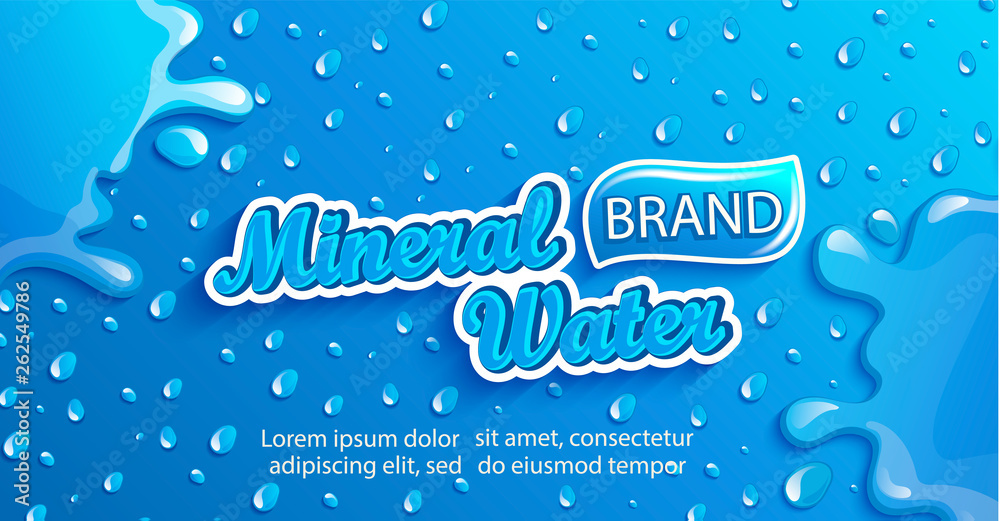 Fotografi Fresh mineral water label, clean and natural with splash and drops from condensation on gradient blue background for brand,logo, template,banner, emblem and store,packaging,advertising,packing