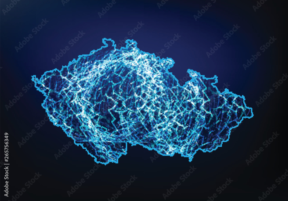 Fotografi Abstract of Czech Republic map network, internet and global connection concept, Wire Frame 3D mesh polygonal network line, design sphere, dot and structure