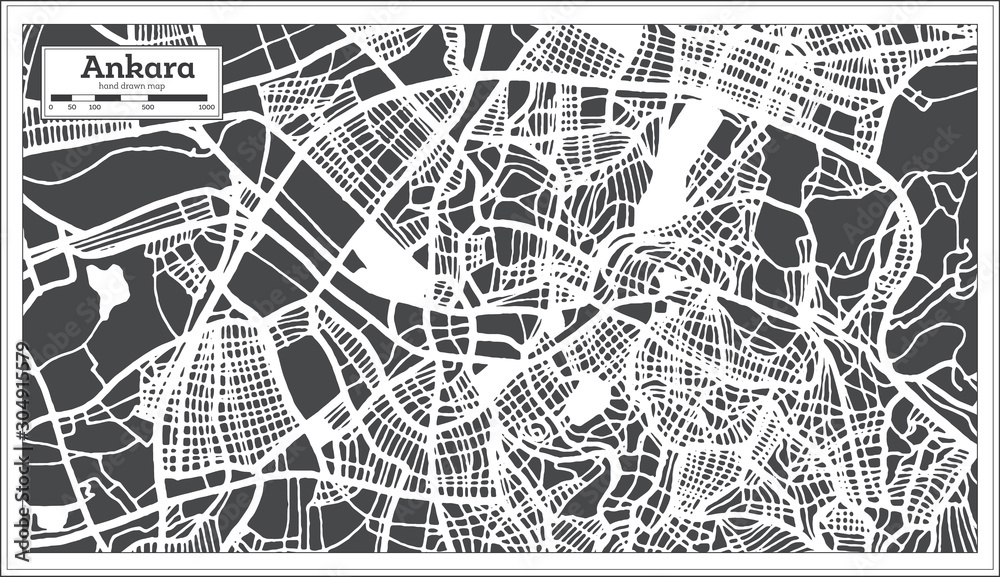 Fotografi Ankara Turkey City Map in Retro Style. Outline Map.