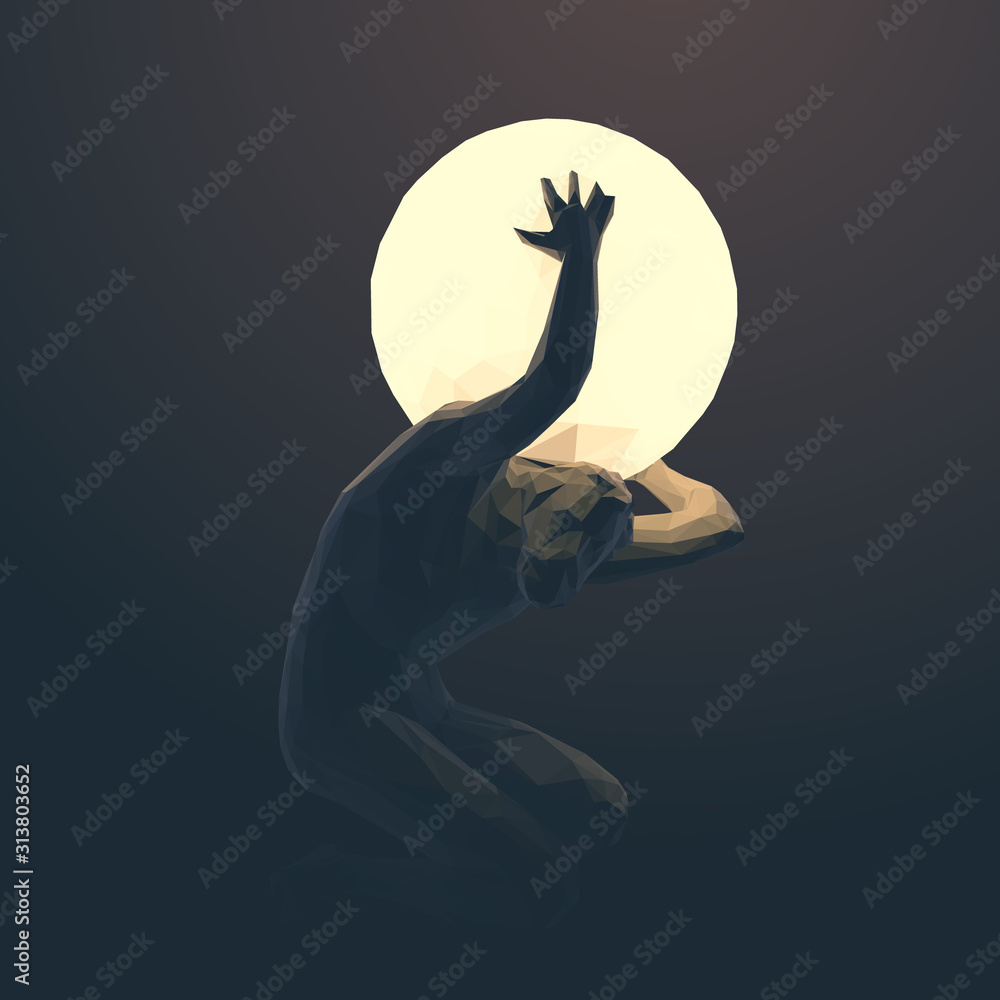 Fotografi Titan Atlas Holding Glowing Planet on Dark Background