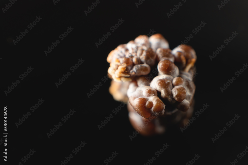 Fotografi Macro extreme nephrolithiasis - close-up of a kidney stone renal calculus or nephrolitis on a black background