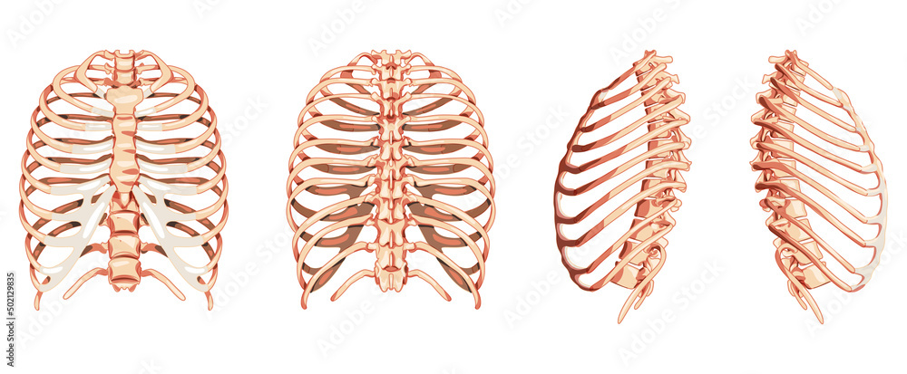 Fotografi Set of Rib cages Skeleton Human front back side ventral, lateral, and dorsal view