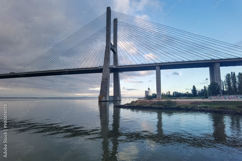 Fotografi suspension bridge in Lisabon, graffiti under the bridge