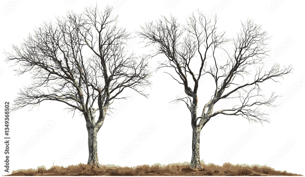 Billede på lærred Vector desolate dry forest, tree leafless isolated, barren wilderness, transpare