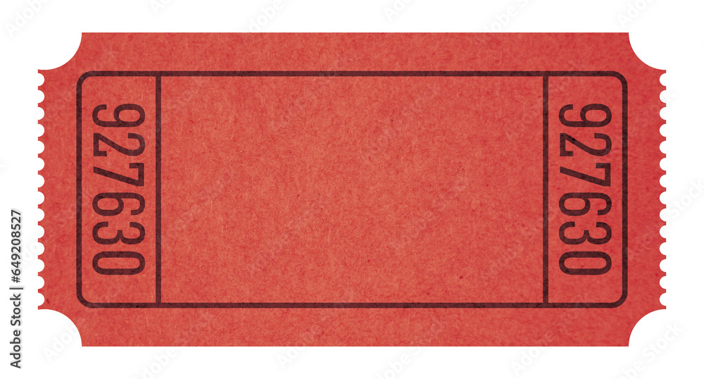 Fotografi Vintage paper red blank ticket isolated on transparent background